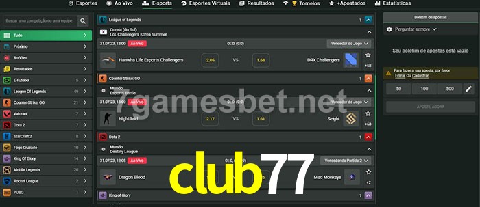 A aposta club77 oferece aos jogadores a experiência mais conveniente de apostas em eSports!